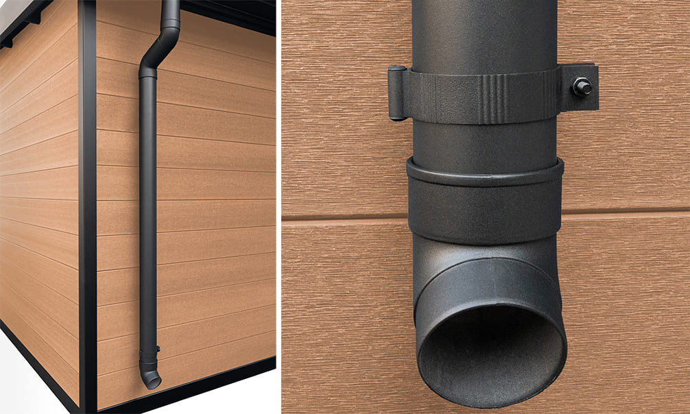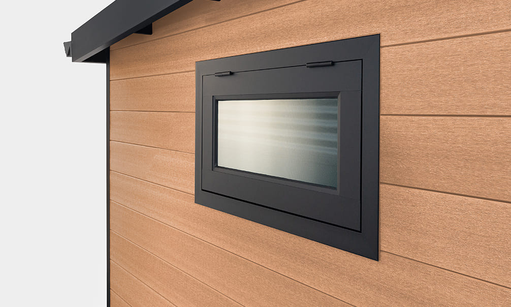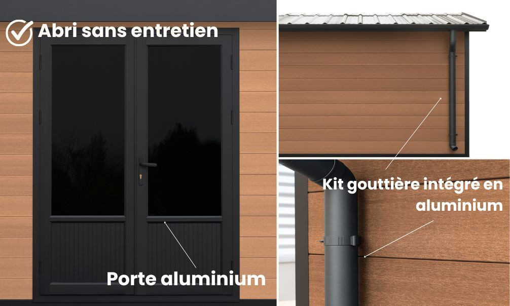 Fabriqué en composite haute qualité, cet abri est imputrescible, résistant aux UV et sans entretien : aucun besoin de peinture ni de lasure. Sa toiture en PVC étanche et sa gouttière en aluminium assurent une durabilité optimale. Une fenêtre ouvrante, positionnable au choix sur le mur de droite ou de gauche, offre un apport de lumière naturelle agréable.