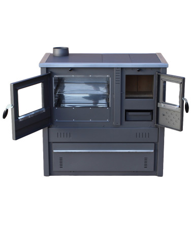 Description Poêle à bois robuste avec four intégré, revêtement céramique haut de gamme, chaleur constante et esthétique moderne. Parfait pour cuisiner sainement tout en chauffant votre maison.