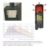 Le principe de l’accumulateur de chaleur est simple : ajouter au poêle une masse de matériaux capables de stocker la chaleur pour la restituer progressivement sur la durée. Ici, le haut du poêle est prévu pour accueillir un kit de briques réfractaires qui se positionne autour du conduit interne. Ceci offre au poêle une inertie thermique importante. Cela lui permet aussi de capter une partie de la chaleur généralement perdue via l’évacuation des fumées. Le poêle chauffe donc plus et plus longtemps. En contrepartie, il chauffera moins vite durant la phase d’accumulation de l’énergie. (voir schéma ci-dessus).