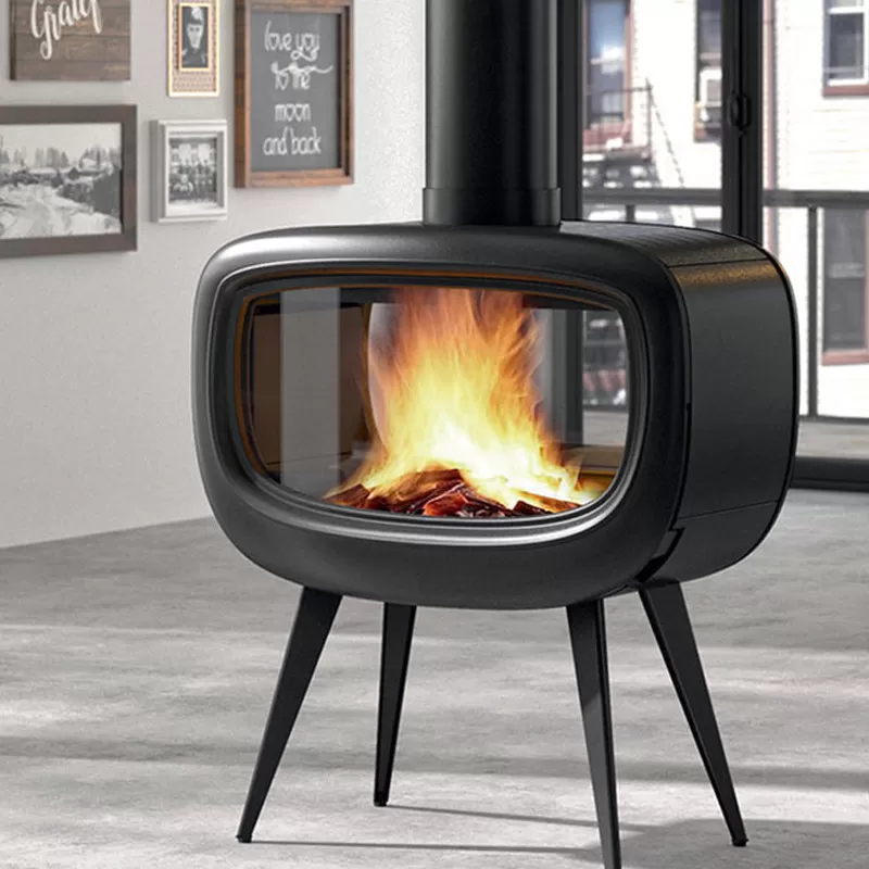 Un poêle à bois double-face au design néo-vintage
