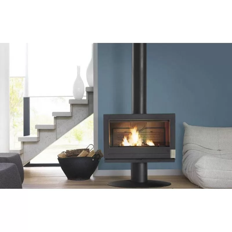 Du haut de ses 210kg, Elton offre une légèreté et un décor aéré sur son pied unique très contemporain. Ce poêle à bois design dispose d’une grande vitre panoramique de 763mm sur 356mm, de quoi laisser transparaître une vue divine sur le ballet fascinant des flammes. Ses lignes droites et de toute finesse lui procurent un chic indéniable. Pour faciliter son installation dans votre pièce, vous pouvez choisir de brancher la sortie fumée soit sur le dessus, soit sur l’arrière.