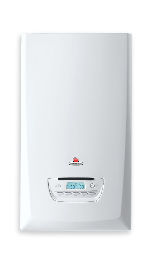 La chaudière murale gaz à condensation ThemaFast Condens est conçue et fabriquée à Nantes par la marque française Saunier Duval. Elle combine un rendement énergétique supérieur à 109 %, un confort sanitaire élevé avec de l’eau chaude immédiatement disponible, et une gestion intuitive développée suivant le principe « 1 touche = 1 fonction ».